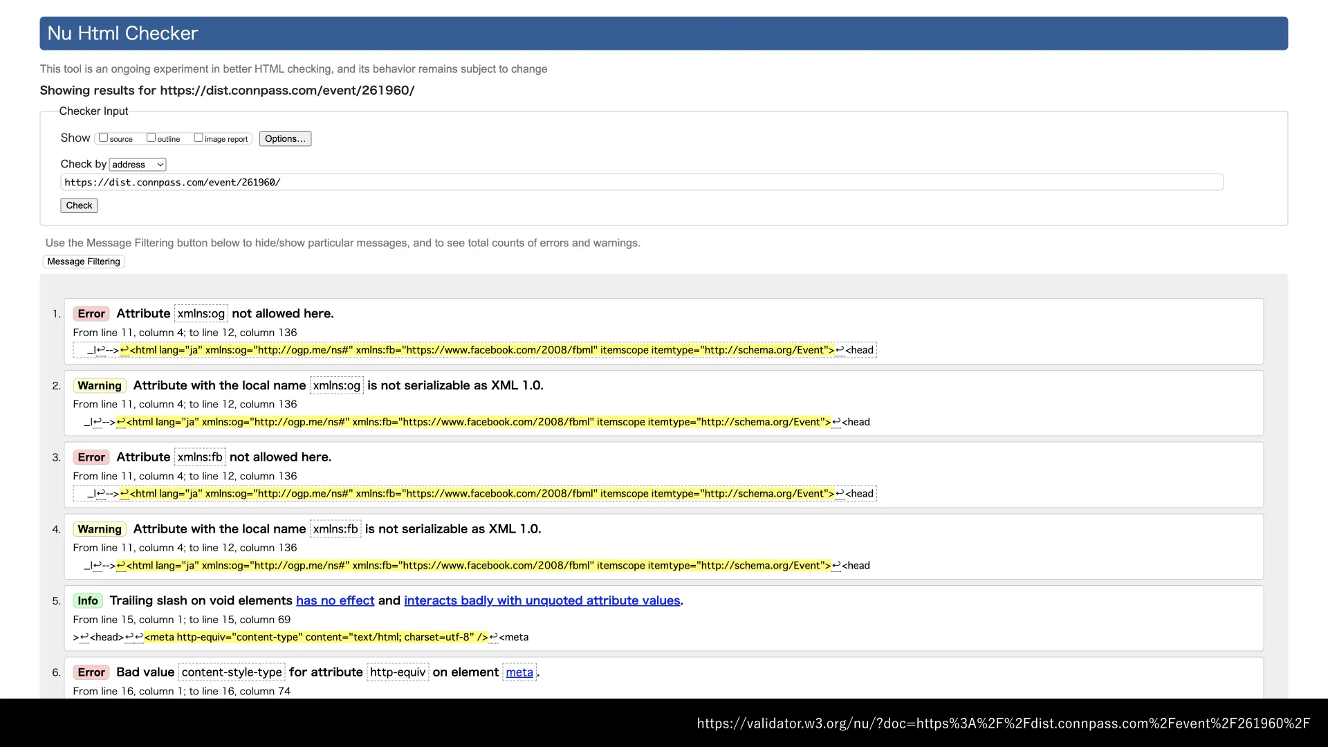 — Showing results for https://dist.connpass.com/event/261960/ - Nu Html Checker