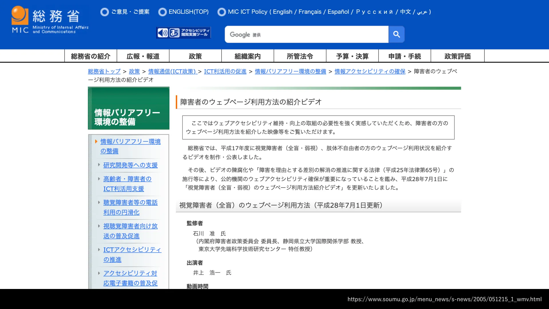 そこで、実際に支援技術を利用する障害者がどのようにウェブページを利用しているかを紹介する動画が総務省から公開されています。まずはこれを見ていただくのがよいでしょう。